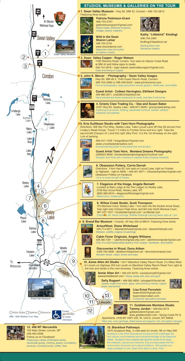 Visit working studios, galleries, and museums in the Swan, Seeley, and Blackfoot valleys.